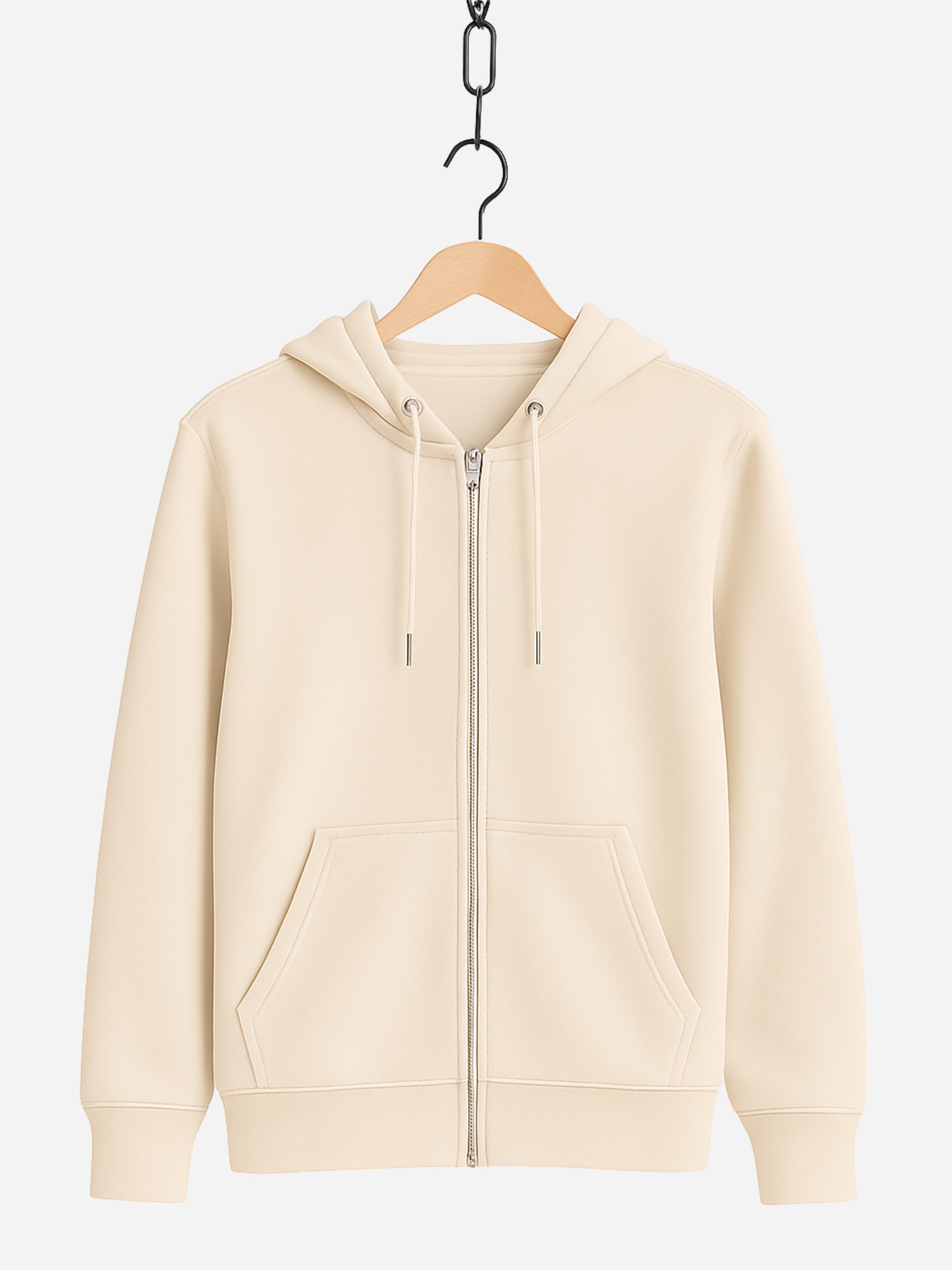 Gefertigt aus 100% Bio-Baumwolle (350 GSM heavy fabric) bietet dieser Zip Hoodie ein angenehmes Tragegefühl, maximale Langlebigkeit und nachhaltige Qualität – perfekt für Herbst, Winter und kühle Nächte.