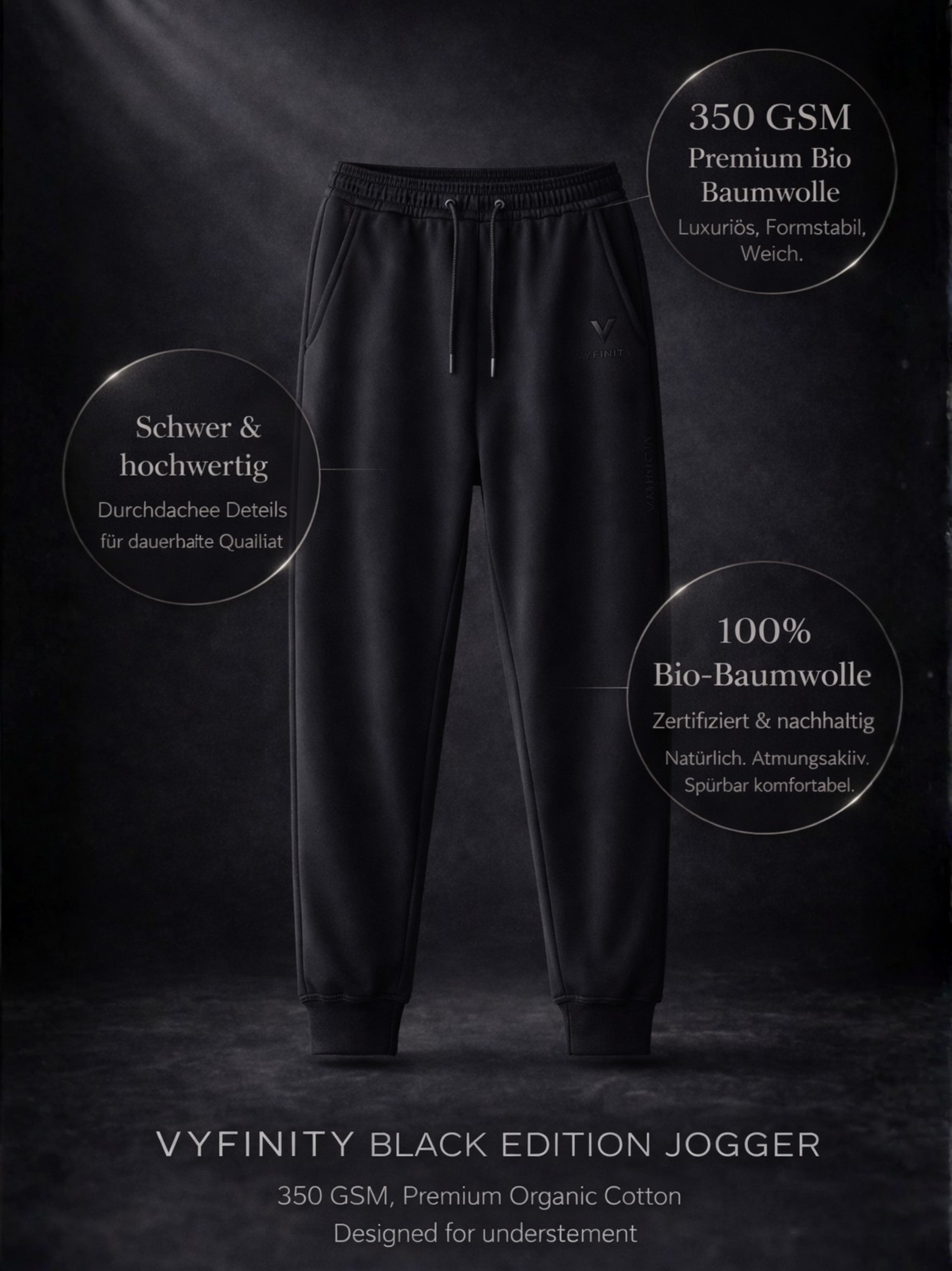 Die VYFINITY Black Edition Jogginghose verbindet Premium-Komfort mit einer strukturierten, modernen Silhouette.